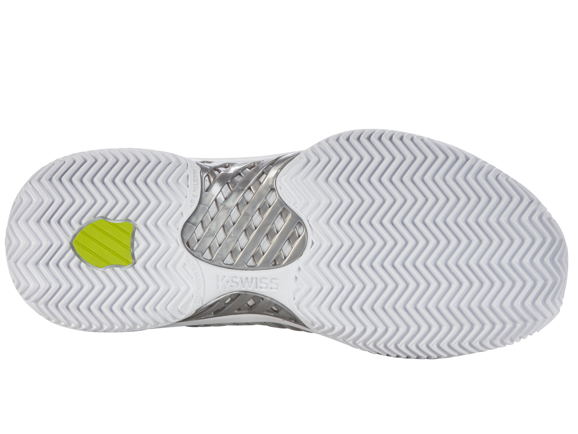 De non-marking buitenzool beschikt over een extra hoge duurzaamheid op essentiële punten en biedt dankzij het speciale visgraatprofiel uitstekende grip op gravelbanen. Daarnaast biedt de clay zool ook voldoende grip op smashcourt- en kunstgrasbanen.