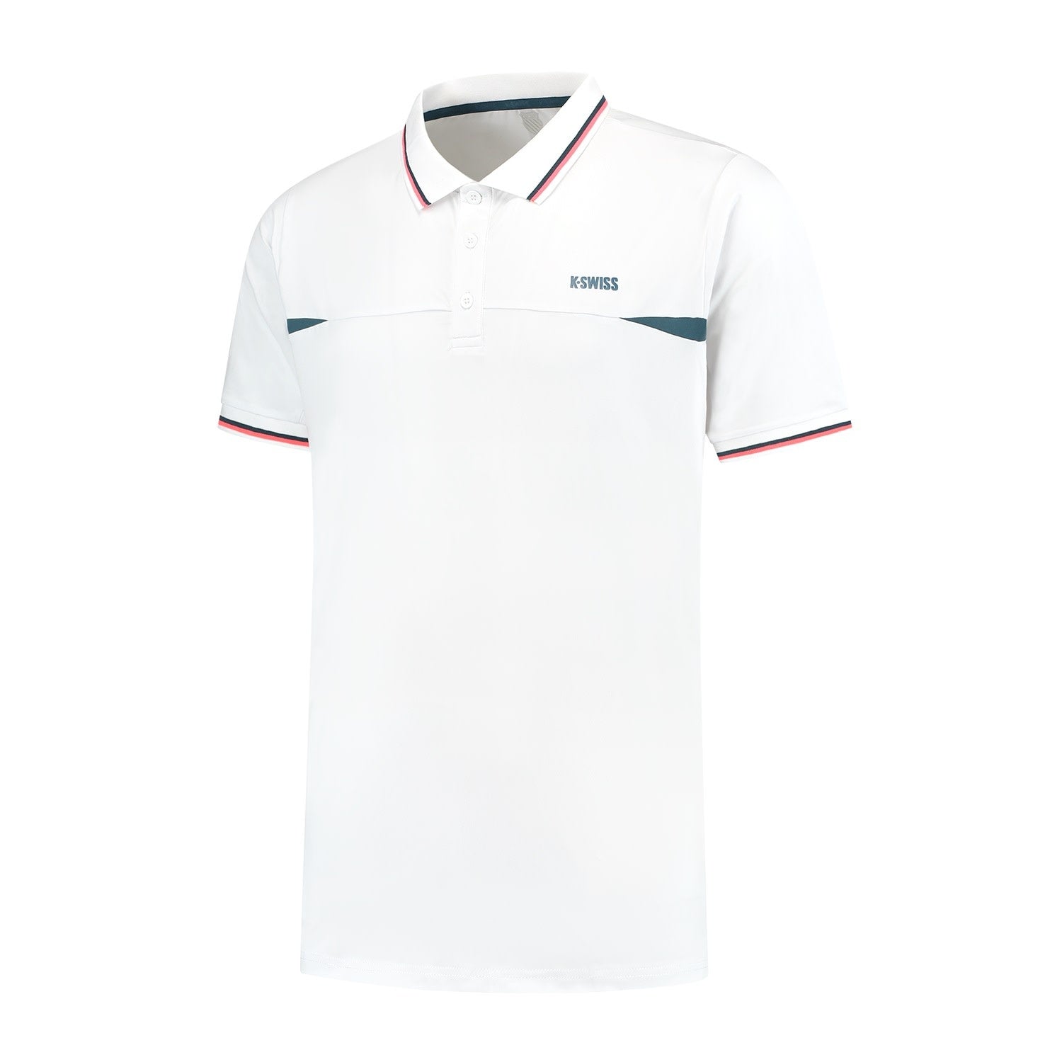 Of je nu op of naast de baan staat, deze polo levert zowel functionaliteit als een tijdloze, sportieve uitstraling, ondersteund door de toewijding van K-Swiss aan duurzaamheid en pasvorm.
