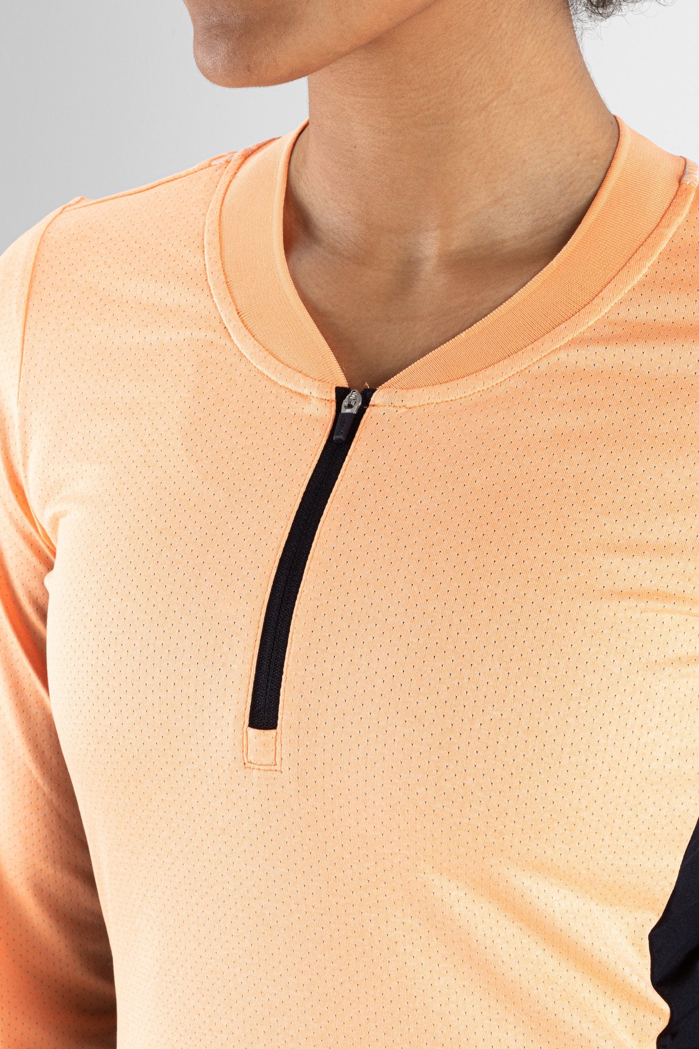 Dames shirt met lange mouwen gemaakt van extra ademende single jersey. Dit shirt is afgewerkt met een ritsje en een halve polo kraag.