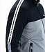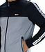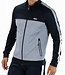 Heren trainingsjack van cloud grey melange powerstretch. Over de mouwen lopen contrasterende inzetten met siliconen print. Dit trainingsjack heeft op de borst een print met het Sjeng Sports logo en langs de zakken met ritsen zit seal-on tape.