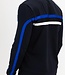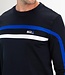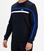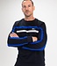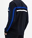 Donkerblauwe heren sweater met crew neck. Over de borst en langs de mouwen lopen strepen in een contrasterende kleur. Ook is op de borst het Sjeng Sports logo geprint. Deze fijne sweater is gemaakt van powerstretch.