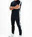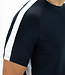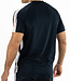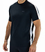 Donkerblauw heren t-shirt van ultralicht ripstop materiaal met contrasterende inzetten van single jersey. Op de inzetten langs de schouders zit een siliconenprint. Het Sjengs Sports logo is op de borst van dit sportieve t-shirt geprint.