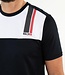 Dit donkerblauwe t-shirt, gemaakt van double face mesh en single jersey, biedt een ademende pasvorm. De witte bovenkant met subtiele siliconenprint op de borst geeft een modieuze look aan een klassiek ontwerp.