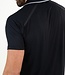 Een sportieve heren polo in donkerblauw met contrasterende streep langs de kraag en een bies van seal-on tape bij de schouders. Gemaakt van ultra-light knit stof voor comfort en stijl, ideaal voor een actieve levensstijl.