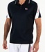 Deze donkerblauwe polo met witte bovenkant combineert dubbele mesh en jersey voor optimale ventilatie. De polokraag en mouwboorden met subtiele, contrasterende accenten voegen een verfijnde afwerking toe.