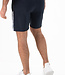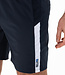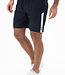 Soepele, zomerse heren short van donkerblauwe geweven stretch met een contrasterende inzet onderaan bij de zijnaden. Deze multisportshort heeft een elastische tailleband met koordsluiting en een achterzak met ritssluiting.