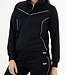 Dit donkerblauwe dames trainingsjack straalt elegantie uit. De foamy interlock-stof biedt een comfortabele loose fit pasvorm. De contrasterende biezen over de body geven dit jack een modieuze uitstraling.