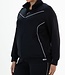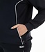 Dit donkerblauwe, plus size dames trainingsjack straalt elegantie uit. De foamy interlock-stof biedt een comfortabele loose fit pasvorm. De contrasterende biezen over de body geven dit jack een modieuze uitstraling.