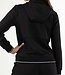 Dit zwarte, hooded dames jack is ontworpen met veel oog voor detail. Het geweven stretch materiaal van dit jack heeft deels een geperforeerd patroon met daaronder een tweede laag stof. Dit loose fit jack is ideaal voor zowel sportieve als casual outfits.