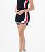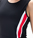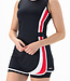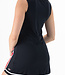 Trendy donkerblauw tennisjurkje met een verticale inzet in contrasterende kleuren langs een zijkant. Dit luchtige, mouwloze jurkje is gemaakt van single jersey. Dit tennisjurkje heeft een los binnenbroekje.