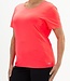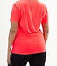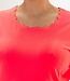 Dit single jersey plus size dames t-shirt in de kleur flame coral biedt een perfecte mix van comfort en stijl. Langs de hals en de mouwen heeft dit loose fit shirt geschulpte randen voor een elegante uitstraling.
