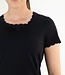 Dit single jersey dames t-shirt in de kleur donkerblauw biedt een perfecte mix van comfort en stijl. Langs de hals en de mouwen heeft dit loose fit shirt geschulpte randen voor een elegante uitstraling.