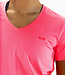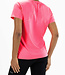 Stijlvol dames v-hals shirt gemaakt van ultralichte jersey in de kleur pink candy. Als opvallende details heeft dit t-shirt platgestikte naden aan de voor- en achterkant en bovenaan de rug een verticale siliconen print met het Sjeng Sports logo.
