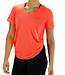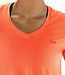 Stijlvol dames v-hals shirt gemaakt van ultralichte jersey in de kleur vibrant orange. Als opvallende details heeft dit t-shirt platgestikte naden aan de voor- en achterkant en bovenaan de rug een verticale siliconen print met het Sjeng Sports logo.