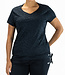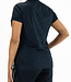 Kom goed voor de dag op de tennisbaan of in de sporthal in dit stijlvolle dames t-shirt met v-hals. Dit donkerblauwe plus size shirt van single jersey heeft een all-over print. De body is van een dubbele laag stof en de mouwen hebben een iets langere lengte.