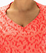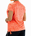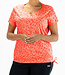 Kom goed voor de dag op de tennisbaan of in de sporthal in dit stijlvolle dames t-shirt met v-hals. Dit vibrant oranje plus size shirt van single jersey heeft een all-over print. De body is van een dubbele laag stof en de mouwen hebben een iets langere lengte.