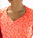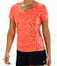 Kom goed voor de dag op de tennisbaan of in de sporthal in dit stijlvolle dames t-shirt met v-hals. Dit shirt van single jersey in de kleur vibrant orange heeft een all-over print. De body is van een dubbele laag stof en de mouwen hebben een iets langere lengte.