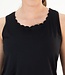 Dit mouwloze, donkerblauwe dames t-shirt biedt een elegante stijl met lasergesneden geschulpte randen langs de hals en onderaan de body. Deze luchtige dames top heeft een comfortabele loose fit.
