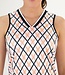 Trendy dames singlet met een vrolijke, kleurige all-over print in ruitpatroon. Aan de rugzijde zit bovenaan een ademende, geperforeerde inzet. Een perfecte singlet voor intensieve activiteiten en warme dagen op de baan.