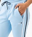Dames capri broek van extra stevige, dubbel gebreide jersey. Deze capri in de kleur blue bell heeft een comfortabele loose fit. De broek heeft een contrasterende bies langs de zijnaden en hij heeft een achterzak met ritssluiting.