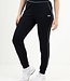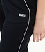 Ga voor comfort met deze soepele, donkerblauwe dames broek, gemaakt van foamy interlock materiaal. Aan de rugzijde heeft deze broek een handige zak met ritssluiting. Pintuck naden en contrasterende pipings voegen een stijlvolle twist toe aan deze sportieve essential.