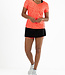 Multisportrokje van geperforeerde donkerblauwe single jersey met een binnenbroekje in de vrolijke kleur vibrant orange. Deze perfecte combinatie van een rokje en short geeft je veel bewegingsvrijheid tijdens het sporten.