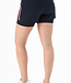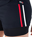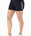 Sportieve short van geweven stretch in een combinatie van de kleuren watermelon en donkerblauw. De short is voorzien van een binnenbroekje en het heeft een fijne hoge tailleband voor een extra mooie pasvorm.