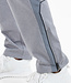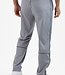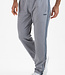 Sportieve heren trainingsbroek met langs de zijnaden inzetten van in reliëf gebreid materiaal. Deze comfortabele broek is gemaakt van soepele, gemêleerde grijze powerstretch. Hij heeft ritsen onderaan de pijpen bij de enkels en bij de kuiten zitten contrasterende strepen.