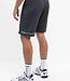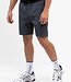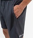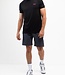Heren short van geweven horizontale stretch in de kleur ebony met een print van zwarte strepen over de rug en langs de zijkanten. Onderaan een van de pijpen loopt een contrasterende print met het Sjeng Sport logo.
