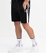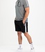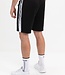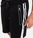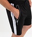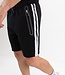 Zwarte short met een print van contrasterende, diagonale strepen aan de zijkanten. Deze comfortabele korte broek voor heren is gemaakt van powerstretch. Hij heeft gesealde zakken en een trekkoord in de elastische tailleband.