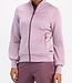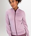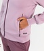 Modieus dames trainingsjack in de nieuwe trendy kleur powder pink. Dit stijlvolle vest is gemaakt van soepele maar toch stevige interlock stof. Het jack heeft pofmouwen met bovenop een in stippen geprinte streep.