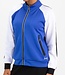 Trendy dames trainingsjack van soepele maar toch stevige interlock stof. De body van dit leuke trainingsvest is uitgevoerd in de kleur blue lotus en voor een opvallend contrast zijn de mouwen wit aan de voorkant en zwart aan de achterkant. Dit jack heeft gesealde zakken en achterop de mouw en onderaan de body een print met het Sjeng Sports logo.