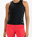 Trendy dames singlet met een mooie, vrouwelijke belijning en als opvallend detail opgedrukte siliconen strepen. Deze singlet is gemaakt van zwarte multistretch. Onderaan bij de zoom zit een schulprand.