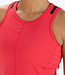 Trendy dames singlet met een mooie, vrouwelijke belijning en als opvallend detail opgedrukte siliconen strepen. Deze singlet is gemaakt van multistretch in de zomerse kleur watermelon rood. Onderaan bij de zoom zit een schulprand.