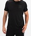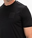 Heren t-shirt met een afgeronde onderzoom en een extra lang rugpand. Dit zwarte t-shirt is gemaakt van ultralicht, gebreid materiaal met deels een geprint ruitpatroon. Aan de rugzijde heeft dit shirt een geperforeerde inzet.