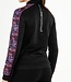 Dit stijlvolle zwarte jack met all-over print is ontworpen voor topprestaties. De foamy interlock stof zorgt voor comfort, terwijl de kleurrijke print en contrasterende biezen langs de mouwen een moderne uitstraling creëren.