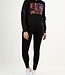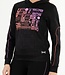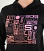 Deze zwarte relax hoodie, gemaakt van foamy interlock materiaal, combineert comfort en stijl. De opvallende, kleurrijke print op de borst en de contrasterende biezen op de mouwen maken dit een veelzijdige keuze voor sport en ontspanning.