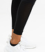 Zwarte dames legging van multi stretch materiaal met opvallende inzetten langs de bovenbenen en bij de kuiten. Deze comfortabele legging is heerlijk om in te trainen en heel geschikt voor bijvoorbeeld fitness of hardlopen.
